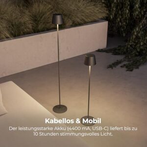 - Kabellos & Mobil – Der leistungsstarke Akku (4400 mA, USB‑C) liefert bis zu 10 Stunden stimmungsvolles Licht – flexibel einsetzbar drinnen und draußen.