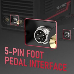 - Praktischere Funktionen: 5-Pin-Fußpedalanschluss vorhanden; Sie können ein 5-Pin-Fußpedal anschließen, um ein- und auszuschalten sowie den Strom zu regulieren. Der Lichtbogenhandschweiß-(MMA)-Modus umfasst einstellbare Arc-Force- und Hot-Start-Funktionalität (Einstellbereich: 0-10). Stabilisiert den Lichtbogen während des Schweißens und verbessert die Zündrate bei niedrigen Strömen. Die Anti-Stick-Funktion verhindert das Ankleben der Elektrode am Grundmaterial. Das eingebaute VRD (Spannungsreduzierungsgerät) verhindert wirksam Stromschlagunfälle, insbesondere in feuchten Umgebungen.