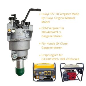 - Für HUAYI SKU P27-3D und P27-1D. Passt für Honda Klon Generatoren angetrieben durch GX340, GX390 (13hp, 15hp, 339cc, 389cc, 420cc, 459cc, 439cc). Wirkt wie ein OEM-Vergaser für Generatoren wie Generac 0J2451 GP5500 Predator 9000 Champion 7000 und viele andere.