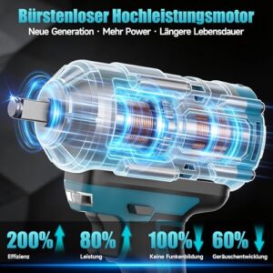 - ⚙️ 【Bürstenloser Hochleistungsmotor】- Der neueste, verbesserte bürstenlose Motor steigert die Effizienz um bis zu 200 %, reduziert die Wärmeentwicklung und verlängert die Lebensdauer deutlich. Er liefert eine starke und stabile Leistung bei verschiedenen Anwendungen – ideal für anspruchsvolle Arbeiten in Werkstatt, Garage oder auf der Baustelle.