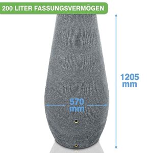 - 200 LITER FASSUNGSVERMÖGEN - Wassertonne im mit unglaublichen 200 Liter Fassungsvermögen. Wasserfass ist für die Größe relativ schmal gehalten und spart somit Platz aber sieht modern aus. Durchmesser unten: 57cm, Höhe: 120,5 cm