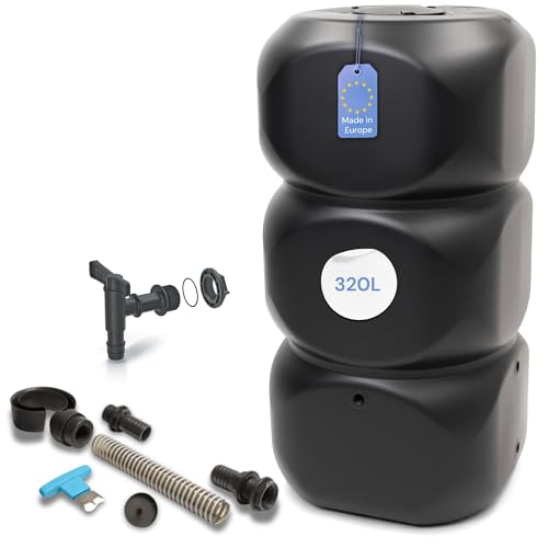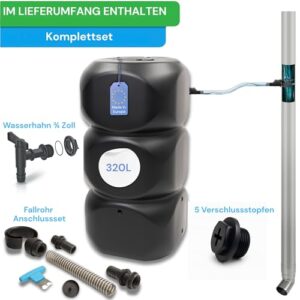 - KOMPLETTLÖSUNG - Im Lieferumfang ist enthalten die Regentonne, ein Wasserhahn, Fallrohr Anschluss Set sowie der passende Deckel. Wassertonnen für Garten nach kurzer Montage sofort Einsatzbereit. Mit einer Kapazität von 320 Litern haben Sie immer genug Gießwasser zur Hand.