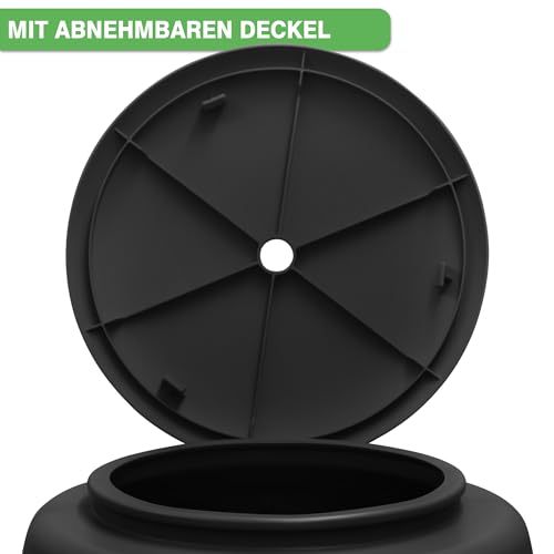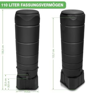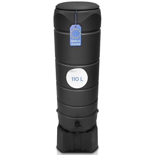 - MODERNES DESIGN - Schöner Regenauffangbehälter der für die Größe relativ schmal gehalten ist und somit Platz spart aber dennoch modern aussieht. Regentonne 110l fügt sich perfekt in Ihren Außenbereich ein und verleiht ihm eine edle Atmosphäre. Der Regenwasserbehälter ist mit einem abnehmbaren Deckel ausgestattet, der den einfachen Zugang zur Wasserentnahme ermöglicht
