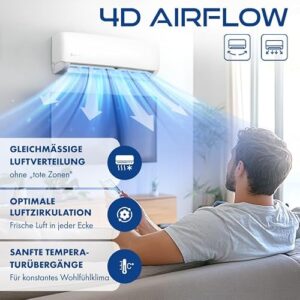 - 𝗙𝗲𝗿𝗻𝗯𝗲𝗱𝗶𝗲𝗻𝘂𝗻𝗴, 𝗔𝗽𝗽 & 𝗦𝗽𝗿𝗮𝗰𝗵𝘀𝘁𝗲𝘂𝗲𝗿𝘂𝗻𝗴 – Steuere dein Klimasplitgerät mühelos von überall aus! Nutze die Fernbedienung, die Smartphone-App oder steuere es per Sprachbefehl über Google Assistant und Alexa. Passe das Raumklima in deiner Wohnung genau nach deinem Geschmack an – für höchsten Komfort und maximale Bequemlichkeit.