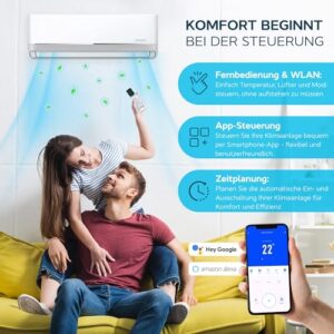 - 𝗙𝗲𝗿𝗻𝗯𝗲𝗱𝗶𝗲𝗻𝘂𝗻𝗴, 𝗔𝗽𝗽 & 𝗦𝗽𝗿𝗮𝗰𝗵𝘀𝘁𝗲𝘂𝗲𝗿𝘂𝗻𝗴 – Steuern Sie das Klimasplitgerät mühelos von überall aus! Nutzen Sie die Fernbedienung, die Smartphone-App oder steuern Sie es per Sprachbefehl über Google Assistant und Alexa. Passen Sie das Raumklima in Ihrer Wohnung genau nach Ihrem Geschmack an – für höchsten Komfort und maximale Bequemlichkeit.
