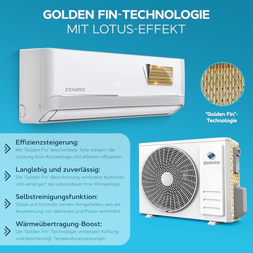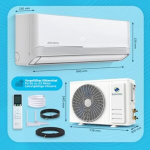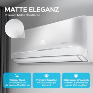 - 𝗜𝗻𝗻𝗼𝘃𝗮𝘁𝗶𝘃𝗲 𝗜𝗻𝘃𝗲𝗿𝘁𝗲𝗿-𝗧𝗲𝗰𝗵𝗻𝗼𝗹𝗼𝗴𝗶𝗲 – Mit der ZENIRO Split-Klimaanlage und ihrer Heizfunktion, die mit dem umweltfreundlichen Kältemittel R32 vorgefüllt ist, profitieren Sie von effizientem Heizen und Kühlen in jedem Raum.